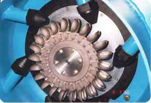 til ca 300 kW. Tverrstrøm-, Francis- og Peltonturbiner produsert i